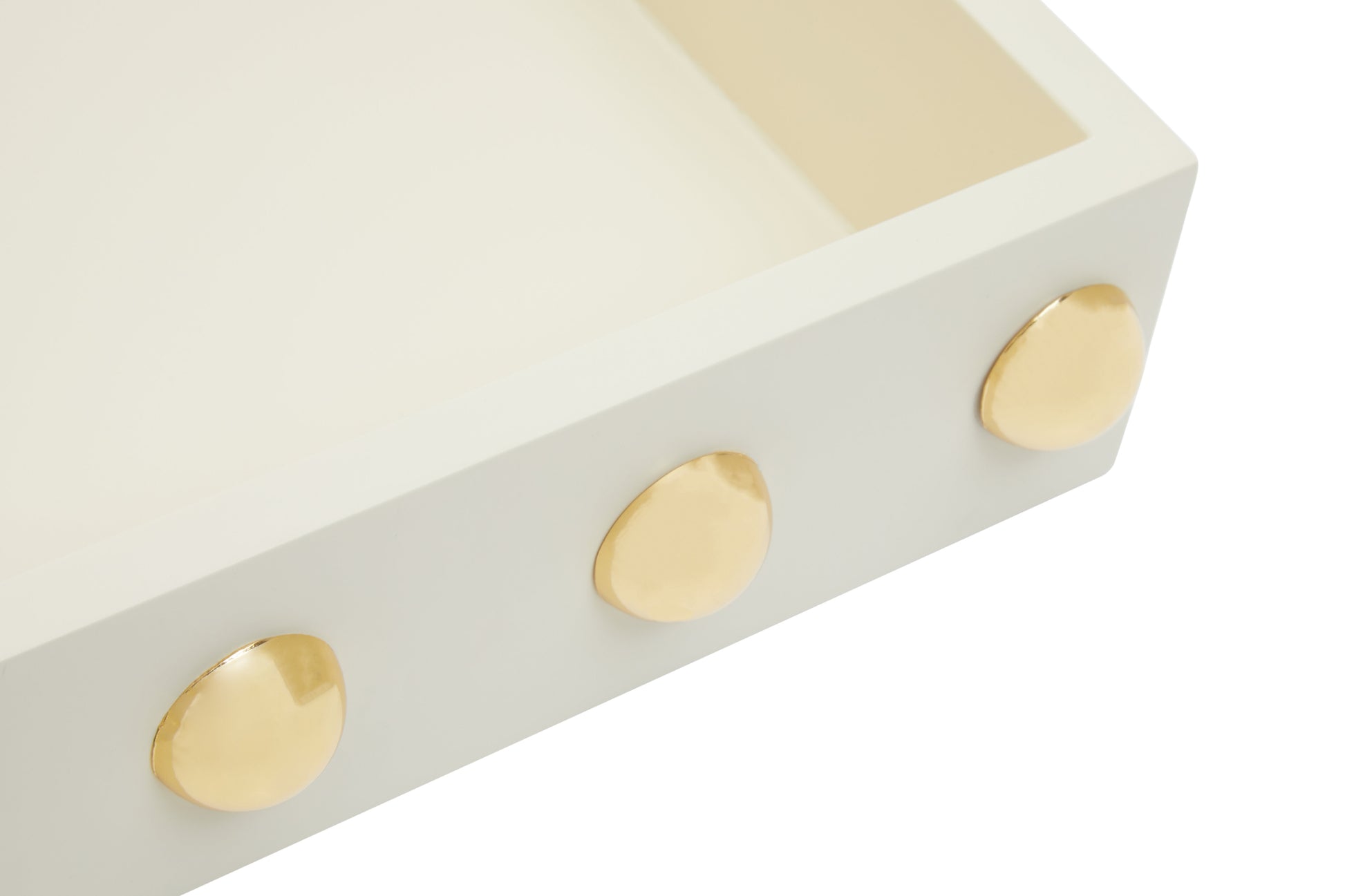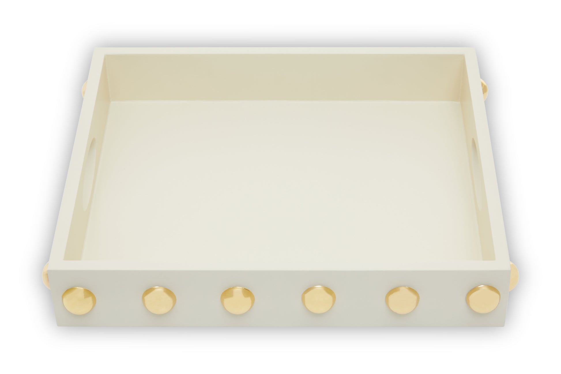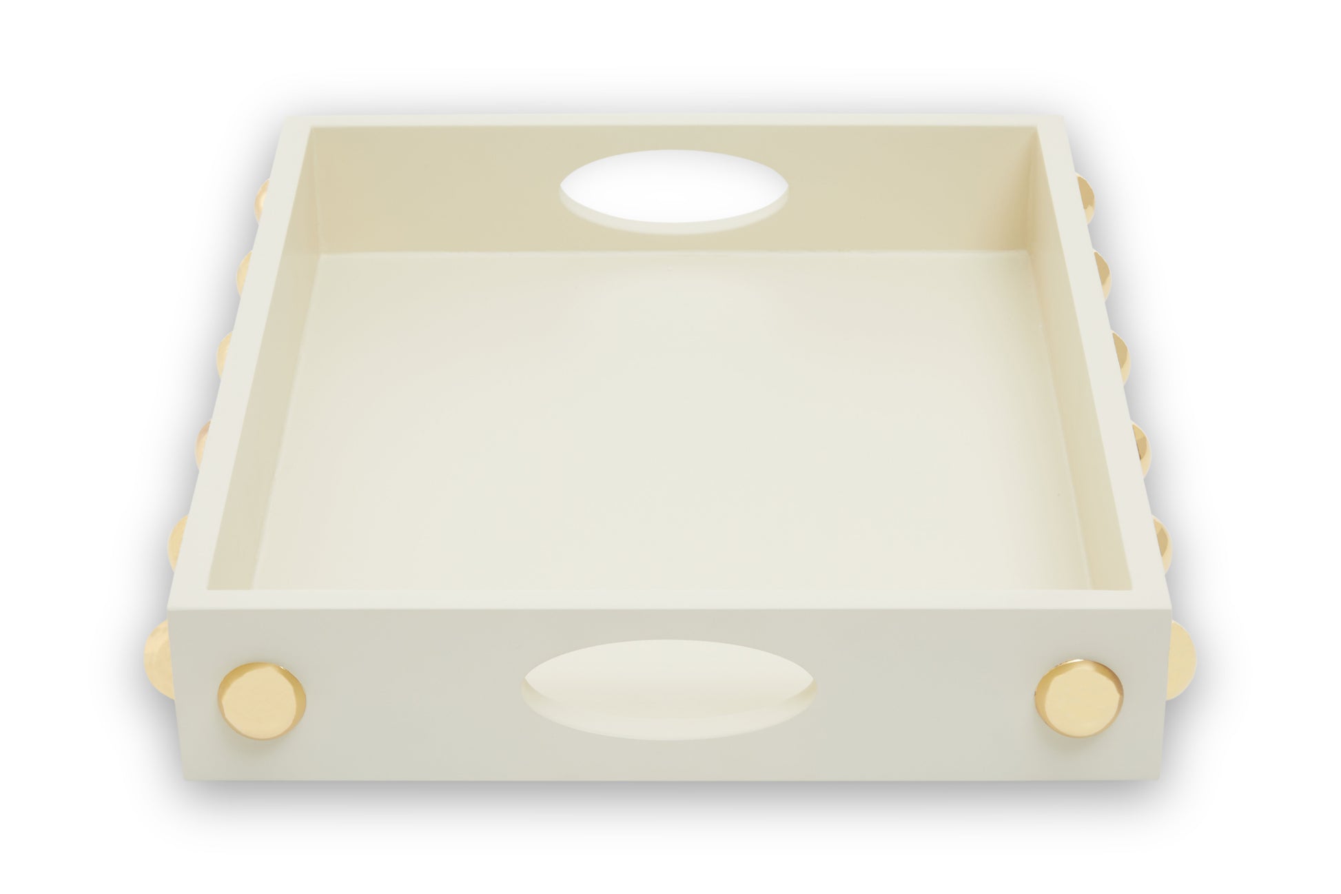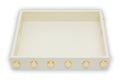 This tray draws influence from the Art Deco era and exudes a glam appeal. Skilfully made from MDF with a stainless steel stud detail in the warm metallic finish, this tray boasts a modern and organic style to a contemporary home.